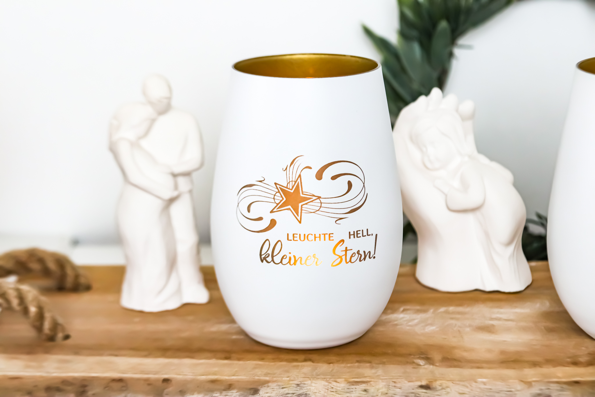 erzeugt ein warmes, helles Licht / Gravur lässt die Außenfarbe schwinden und das Licht scheint nach außen durch die Innenwand